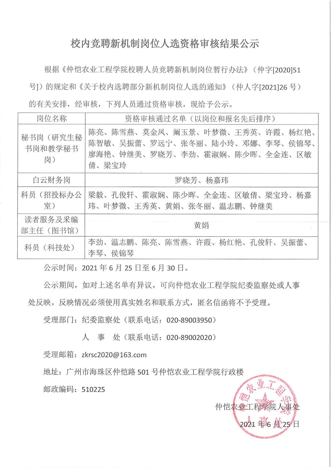 校内竞聘新机制岗位人选资格审核结果公示