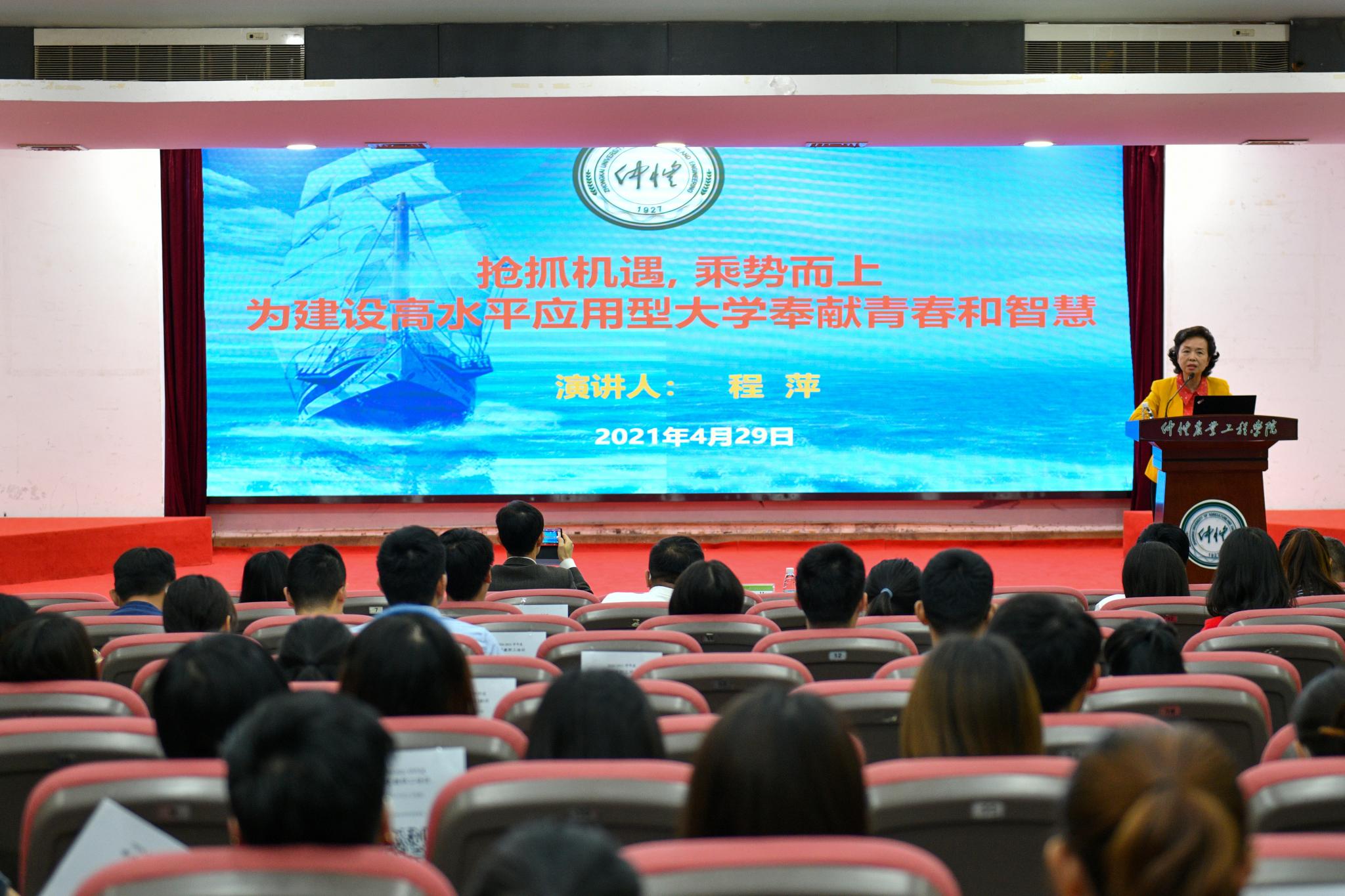 4月29日上午,学校党委书记宋垚臻、校长程萍在学术报告厅分别为2020~2021学年新进教职工讲授第一堂课。