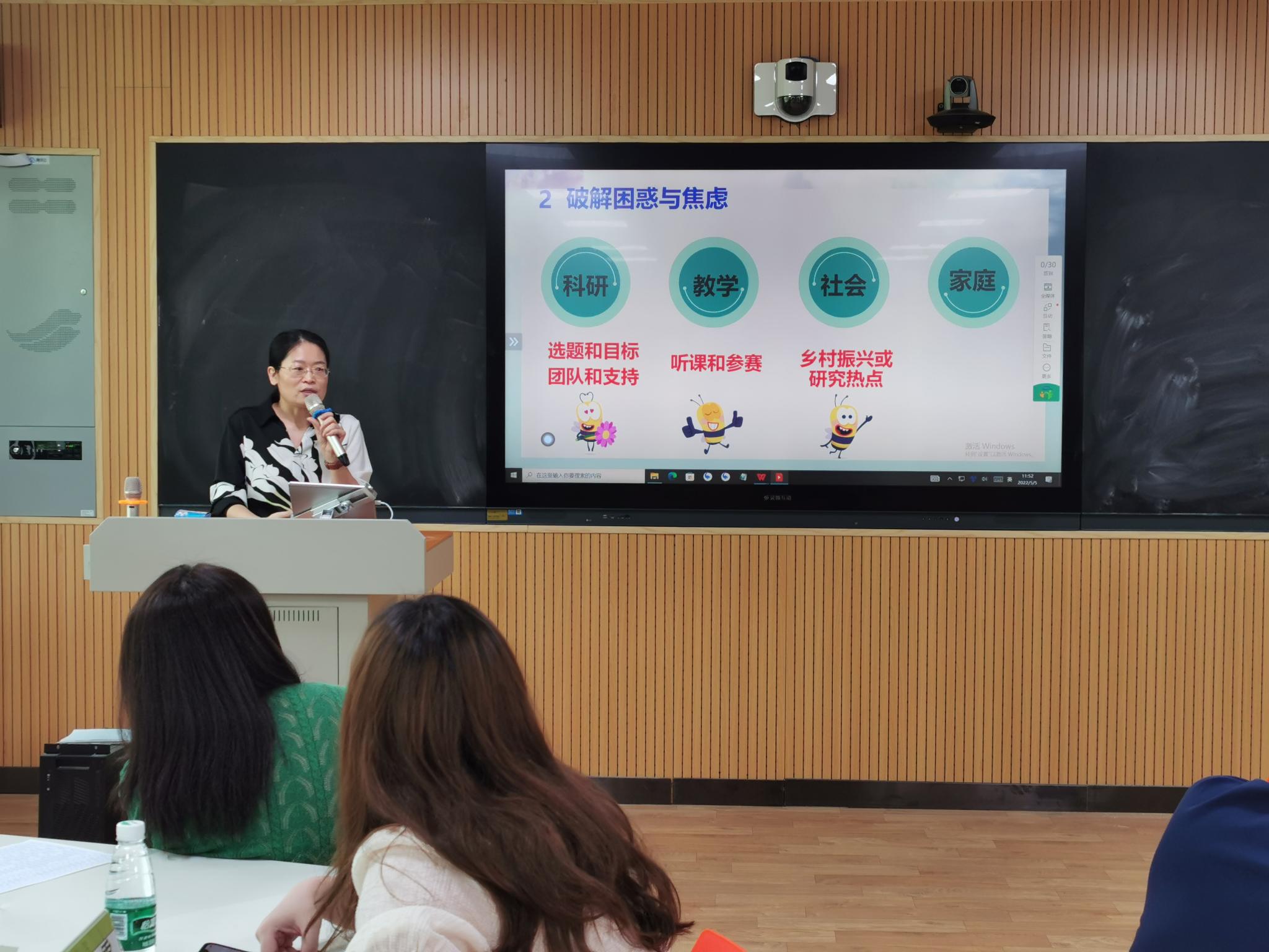 何琳以《终身成长》为题分享了自己从教一路的成长、顿悟和觉醒。蔡肯以《成长之路的一点分享》为题分享了自己开展博士后研究、参加国内外访学、晋升职称一路来的心路历程,他认为年轻人要有“鲜衣怒马少年时,不负韶华行且知”的勇气,做任何事都要有明确的目标,制定详细的计划,不断努力付诸行动。