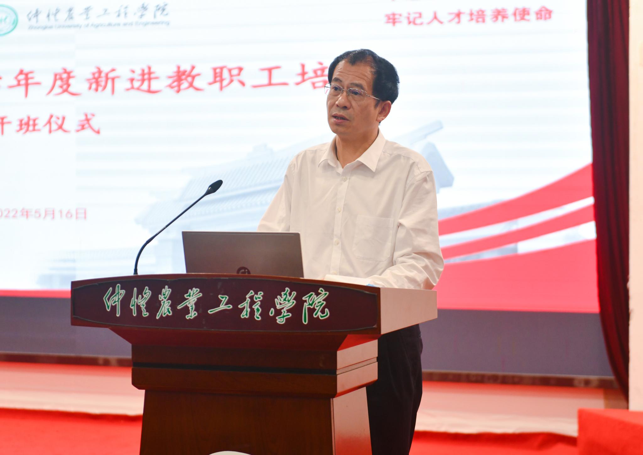 5月16日上午,学校在海珠校区学术报告厅举行2021-2022学年新进教职工培训开班仪式,学校党委常委、副校长林俊睦出席开班仪式,各相关职能部门负责人及142名新进教职工参加仪式。仪式由人事处处长唐明勇主持。