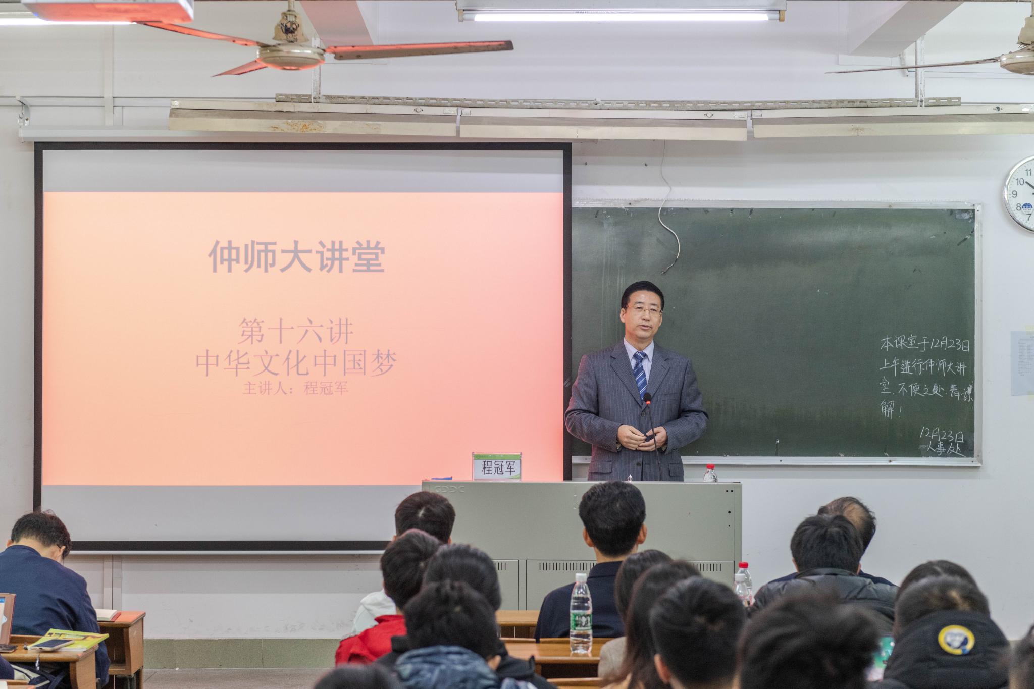 12月23日上午,学校在海珠校区教学楼403举行仲师大讲堂第十五讲主题报告,报告邀请了中国领导科学研究会副秘书长、中国领导网执行总编辑,中国作家协会会员,资深媒体人,知名文化学者程冠军副秘书长作为主讲嘉宾。报告会由学校党委教师工作部、人事处主办,马克思主义学院承办。《中国领导科学》杂志社社长助理郑国材、主任邵军出席了报告会。学校党委教师工作部部长、人事处处长唐明勇主持。