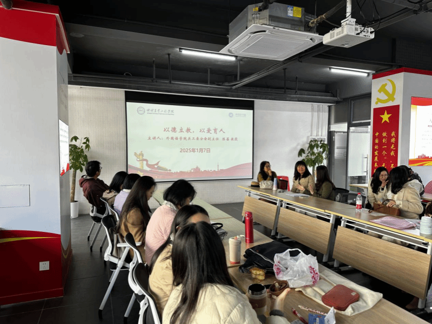1月7日,外国语学院在白云校区举办了一场以“以德立教,以爱育人”为主题的座谈会。座谈会由外国语学院关工委分会副主任、曾任外国语学院首任院长陈葆教授担任主讲嘉宾,陈葆教授曾获南粤优秀教师及广东师德先进个人等荣誉。学院党委书记柴明勤主持座谈会。