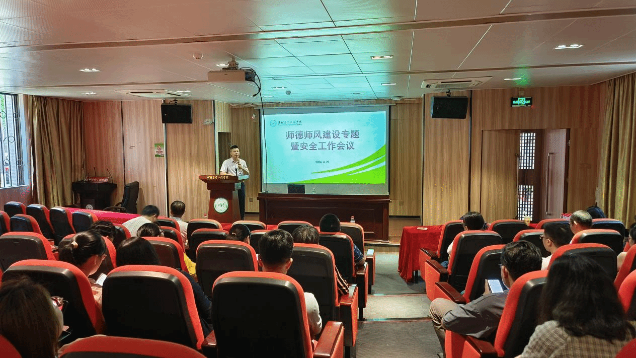 4月25日下午,动物科技学院在海珠校区英东楼111召开2024年师德师风建设专题暨安全工作会议,学院全体教职工参加,会议由学院党委副书记李昌辉主持。