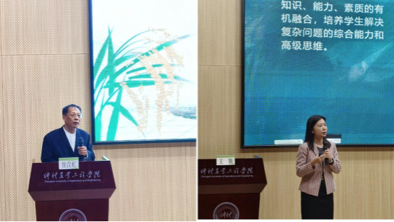 12月8日上午,华南农业大学徐汉虹教授作《青年教师如何提升教学科研能力》专题报告。徐汉虹以自己的《植物化学保护学》建设为例,提出教学要成精品,一个人主打一门课程。他提出,要根据学情、教情、课情做好教学改革;用故事性讲述、情景式代入、案例式启发、问题式碰撞打造极致的课堂设计。他表示,教学科研要立足学科优势,破解生产实际问题;从国家需求出发,培养学生专业使命感。他用“长板理论”启发老师们,专注于擅长的事,不断优化细节,打造精品课程。华南师范大学王颖教授作《以赛促教,守正创新》专题报告。王颖结合自身备赛经历,为老师们分享了如何选取合适的课程、如何进行课程设计、如何有效课堂互动等。她提到,教学比赛“内容为王”,内容上不能脱离学校的办学定位与办学方向,一名教师的金课胜任力体现在道德情操和专业水平上。徐汉虹和王颖的讲座展现了两位教学比赛国奖获得者的深厚学术积淀和丰富教学经验,让在场老师们深受启发。
