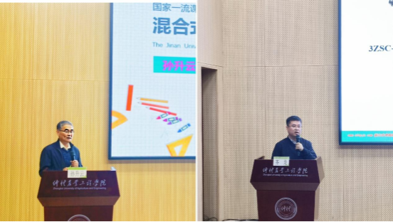 专任教师教学科研能力专题培训于12月7日和8日上午进行。12月7日上午,暨南大学孙升云教授作《国家一流课程建设与混合式教学设计与实施》专题报告。孙升云从政策入手,为老师们解读了国家对于线上、线下以及混合式一流课程建设的要求。他表示,一流课程建设要注重以教为中心向以学为中心转变,以提升教学效果为目的,运用适当的数字化教学工具。实施打破传统课堂“满堂灌”和沉默状态的方式方法,训练学生问题解决能力和审辩式思维能力。他指出,“教学有法,教无定法”,线上线下混合式教学,不应该套用统一的模式,要因课制宜,因材施教,发力适度,瞄准痛点。华南农业大学研究员齐龙作《青年教师如何做好科研》专题报告。他以亲身经历,向大家讲述了自己在“水稻智能机械除草技术与装备”方面的科研历程,从寻找方向到凝练成果,从论文发表到国家自然科学基金重点联合基金,他向老师们展示了一路走来的所思、所想、所获以及如何胸怀“国之大者”走好科研之路,对青年教师的成长有较强的指导意义。